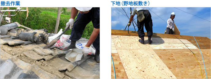 すでに葺かれている屋根材を撤去して新しい屋根材に葺き替える工事方法です。